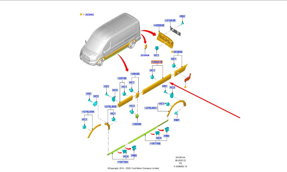 Молдинг (накладка кузовная) правый Ford Transit 8 L3H2 2017